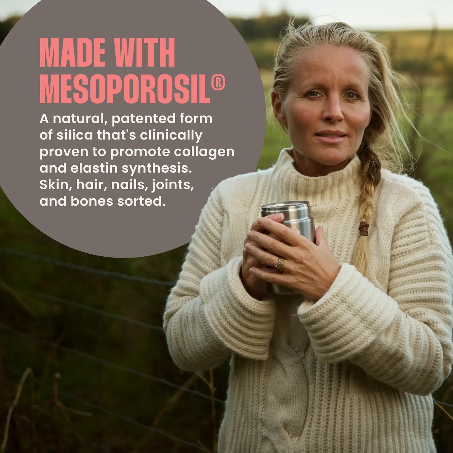 Made with Mesoporosil®: A natural, patented form of silica that's clinically proven to promote collagen and elastin synthesis. Skin, hair, nails, joints, and bones sorted.